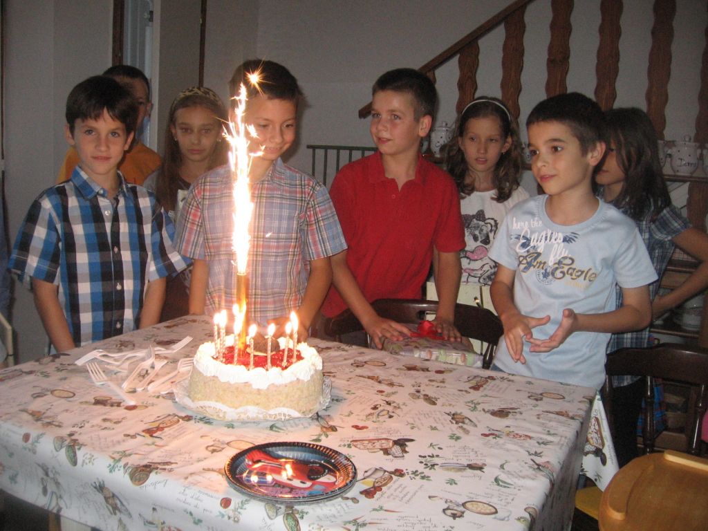 Üröm az örömben, hogy a buli alatt megismerkedtünk a 6. lakóval. Lassan másfél hónapja itt lakunk, de eddig sosem láttam. Mit mondhatnék arról, hogy azért jött át, hogy elviselhetetlen a hangzavar, a rohangálás, az ordítás és ő nem tud pihenni... Magyarázta nekem, hogy értsem meg, hogy egész héten dolgozik reggeltől késő estig, csak a hétvége van arra, hogy kipihenje magát. Mondtam, hogy nézze el ezt a 3 órás szülinapi bulit, utána csend lesz. Közben azért átfutott az agyamon, hogy mi is ugyanezt csináljuk, vagyis dolgozunk egész hét közben és nekünk is a hétvége lenne pihenésre, csak van plusz 4 gyerek, így aztán az ember néha fáradtabban kezdi a hétfőt, mint a szombatot. Abban viszont hibáztam, hogy csak a kisgyerekes szomszédnak szóltam, hogy buli lesz, nem gondoltam volna, hogy az egyedülálló fiatal csajszi fog kibukni a dologtól. Legközelebb előre szólunk neki:-DD